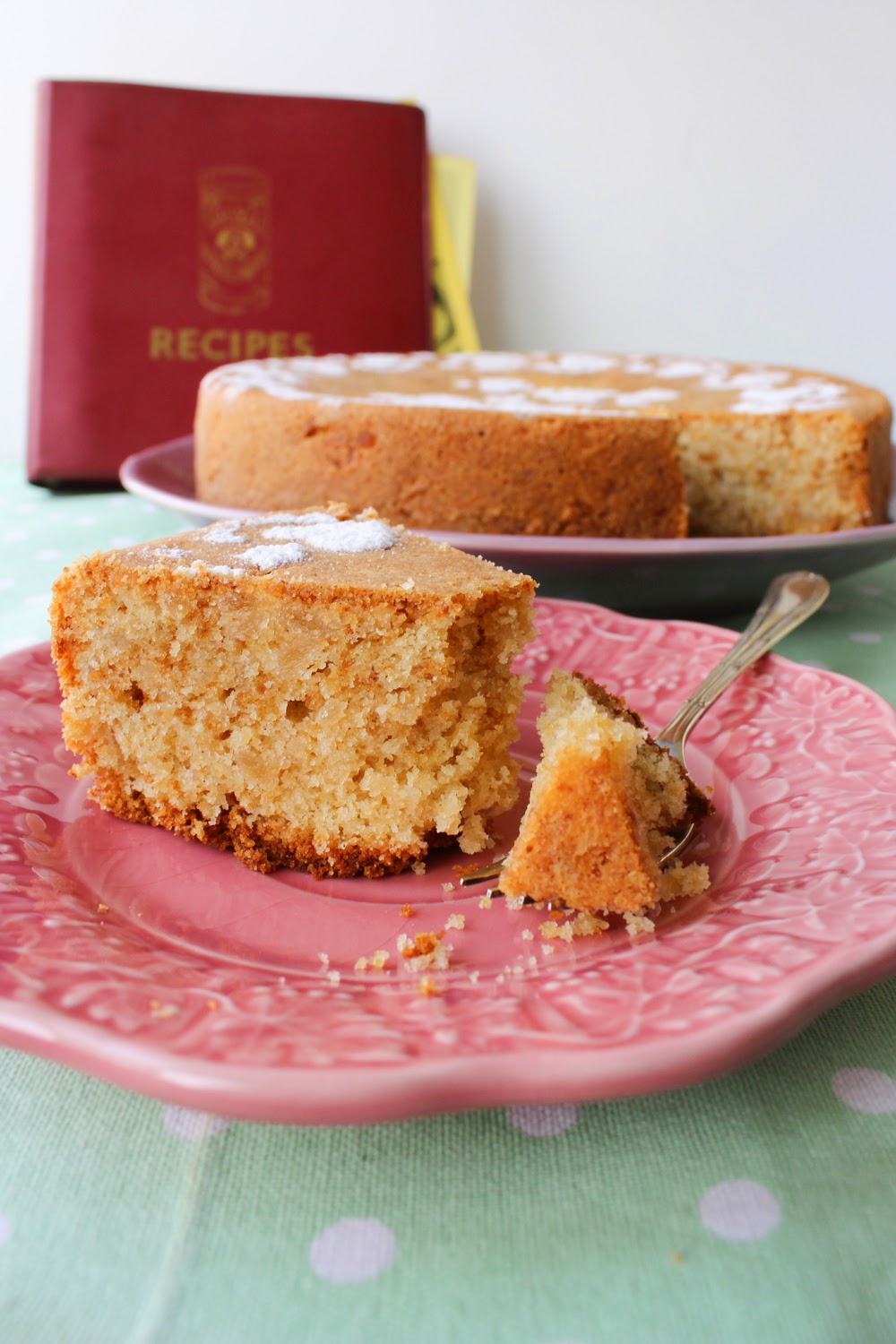 A goiaba da receita original foi substituída por maçãs, uma vez que estamos agora na sua época. E para dar mais algum sabor ao bolo, optei por cozer primeiro as maçãs, na companhia de canela e noz moscada. O bolo ficou fofo e leve, perfeito para rechear com um creme de mascarpone e mel, por exemplo, ou para comer assim simples, em fatias generosas.